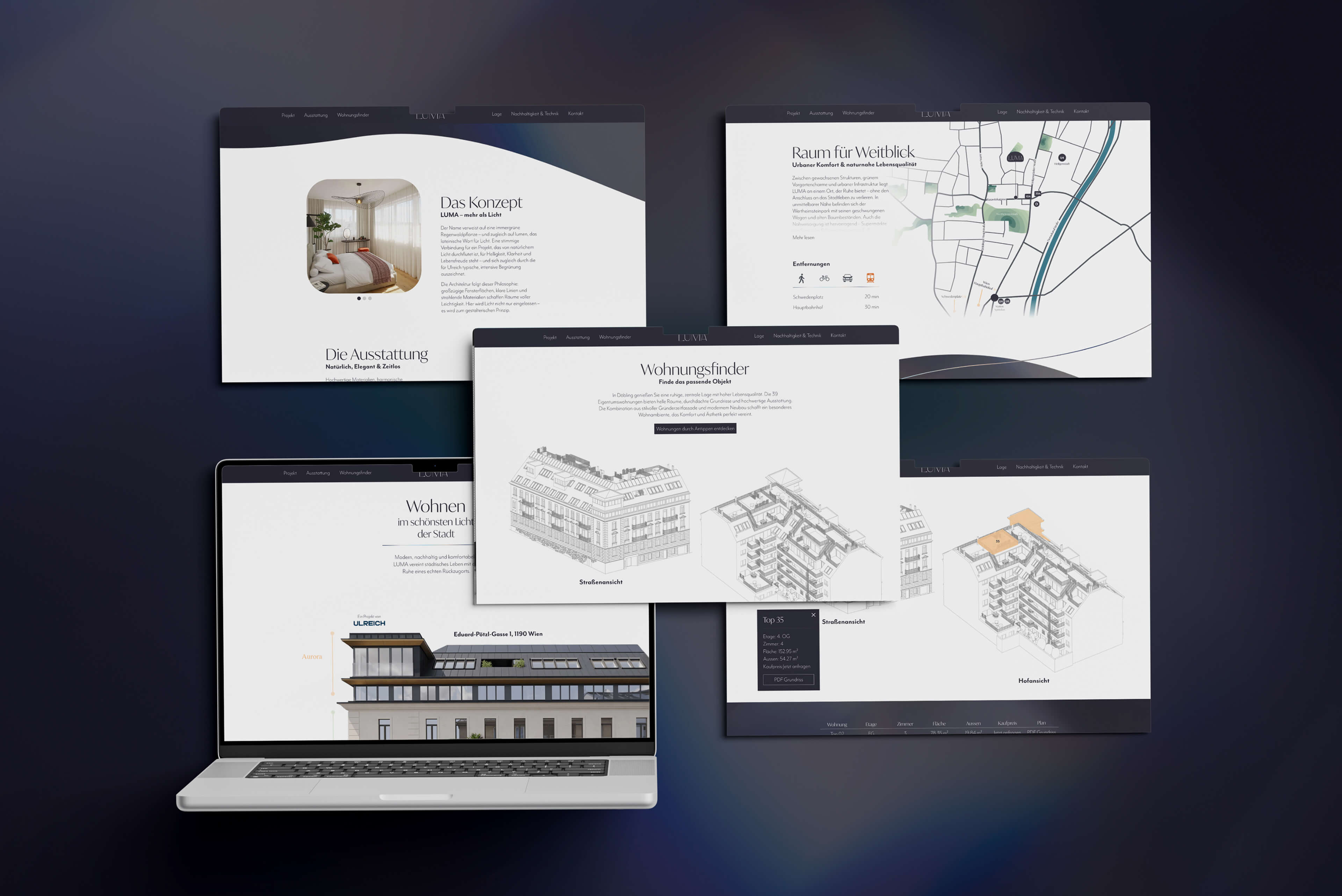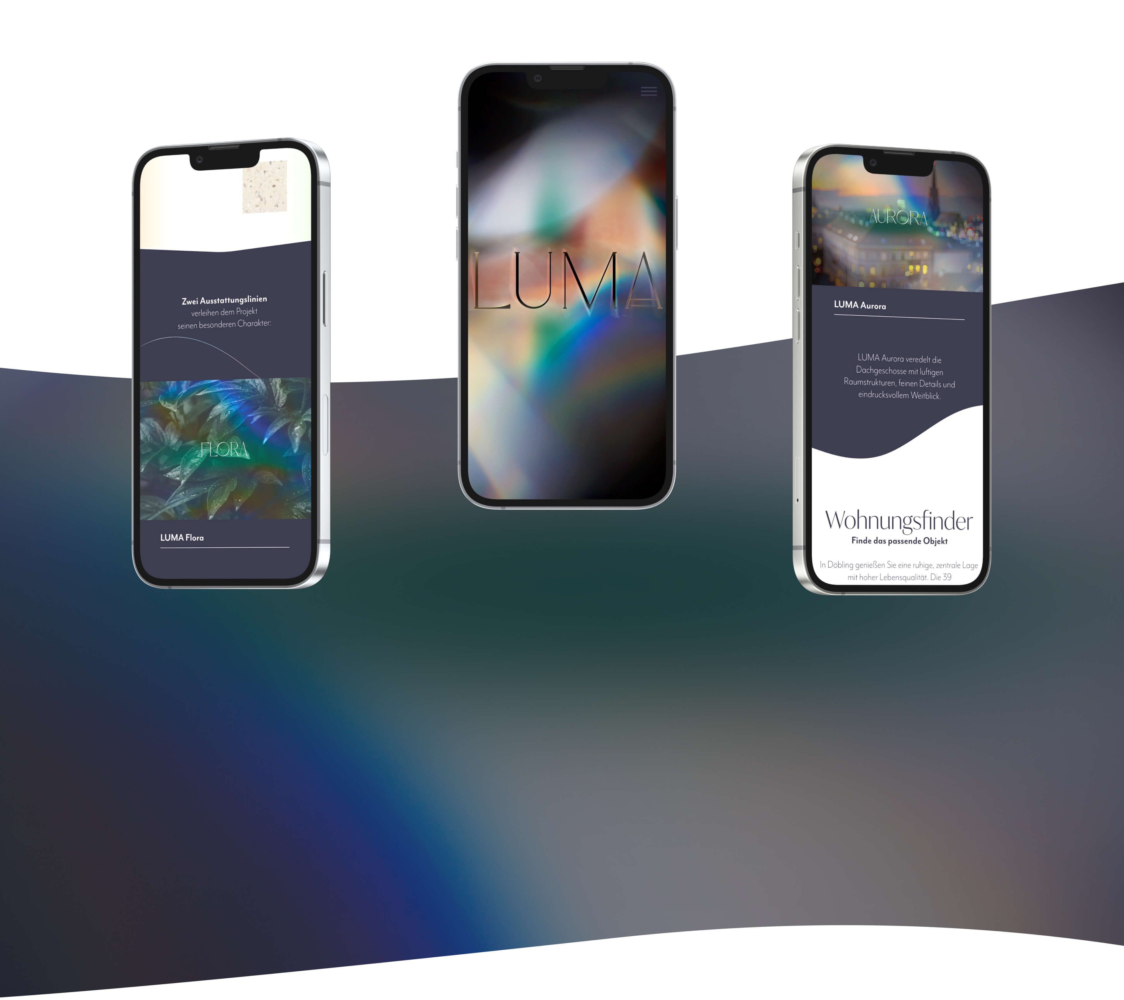 LUMA steht für Licht, Klarheit und ein zeitgemäßes Wohngefühl. Im Herzen des begehrten 19. Wiener Bezirks vereint das Projekt sorgfältig sanierte Altbausubstanz mit einem harmonisch integrierten Neubau zu exklusiven Eigentumswohnungen.Diese Leitidee bildet auch die gestalterische Basis der Website. Inspiriert vom Logo übersetzt das Webdesign die architektonische Philosophie von LUMA in eine visuelle Sprache aus dynamischen Formen, fließenden Übergängen und gezielten Lichtakzenten. Helligkeit und Leichtigkeit werden so nicht nur inhaltlich vermittelt, sondern auch digital erlebbar gemacht.